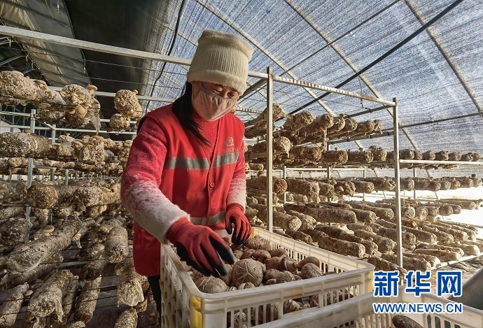隆冬時節,秦王川不時卷起陣陣寒風,在蘭州新區秦東農業投資發展有限公司食用菌種植基地,一排排溫室大棚里暖意融融。菌棒上的一朵朵香菇伸展著圓鼓鼓的傘蓋,正是收獲的時候。