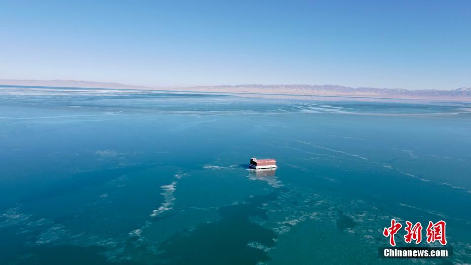 12月21日,航拍冬日青海湖。冬日青海湖周?chē)姆e雪將湛藍(lán)的湖面包裹起來(lái),不斷上凍的湖面猶如一面鏡子。(無(wú)人機(jī)照片) 中新社記者 李江寧 攝