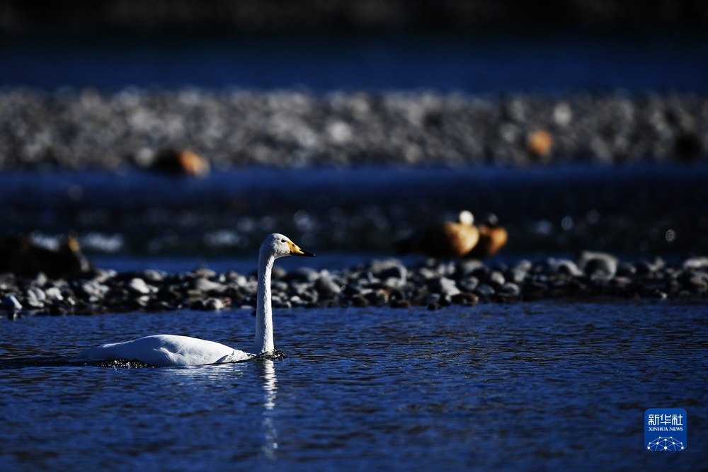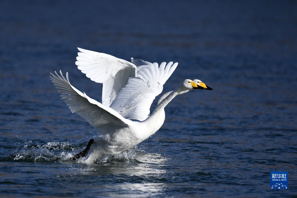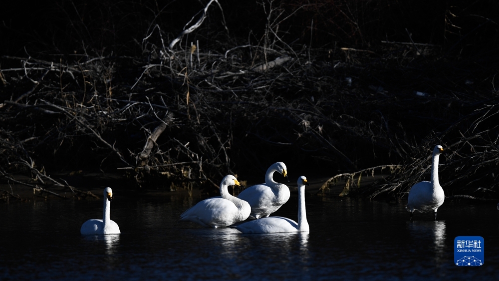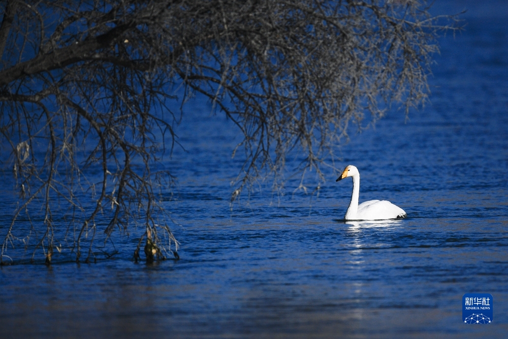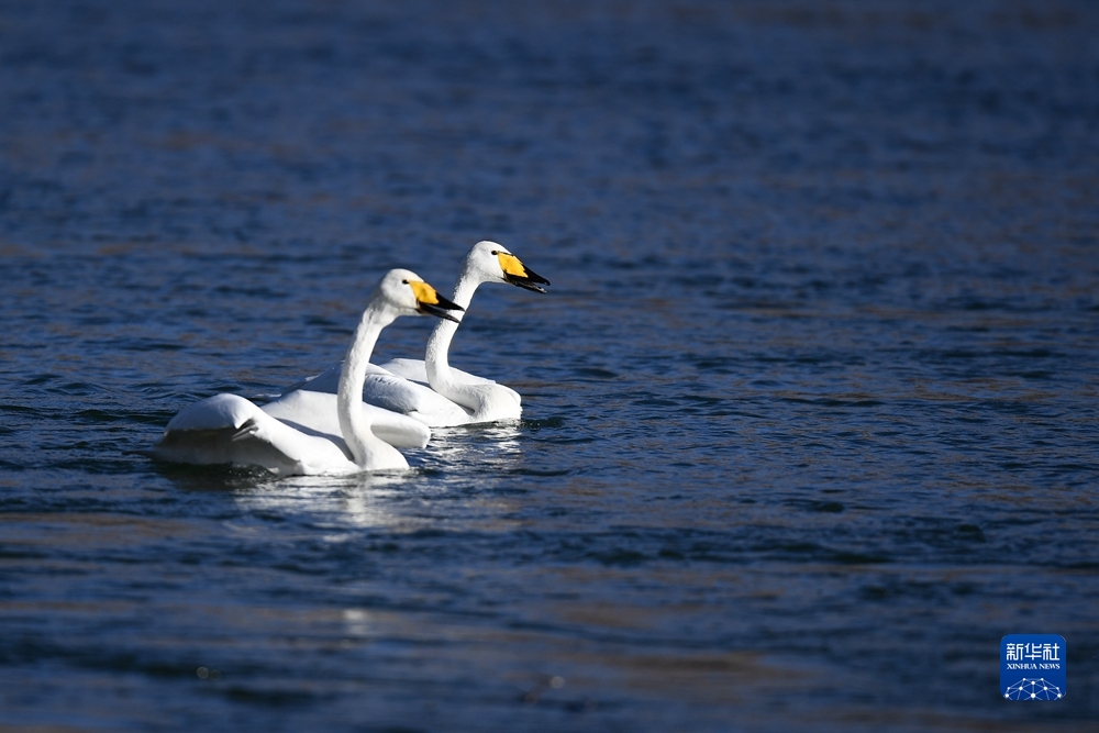 近日,前來越冬的近百只天鵝在青海省海南藏族自治州貴德縣境內的黃河濕地覓食休憩,為冬日黃河帶來勃勃生機。近年來,青海省加大力度保護治理境內黃河流域,改善當地生態環境,為越冬候鳥提供良好棲息地。