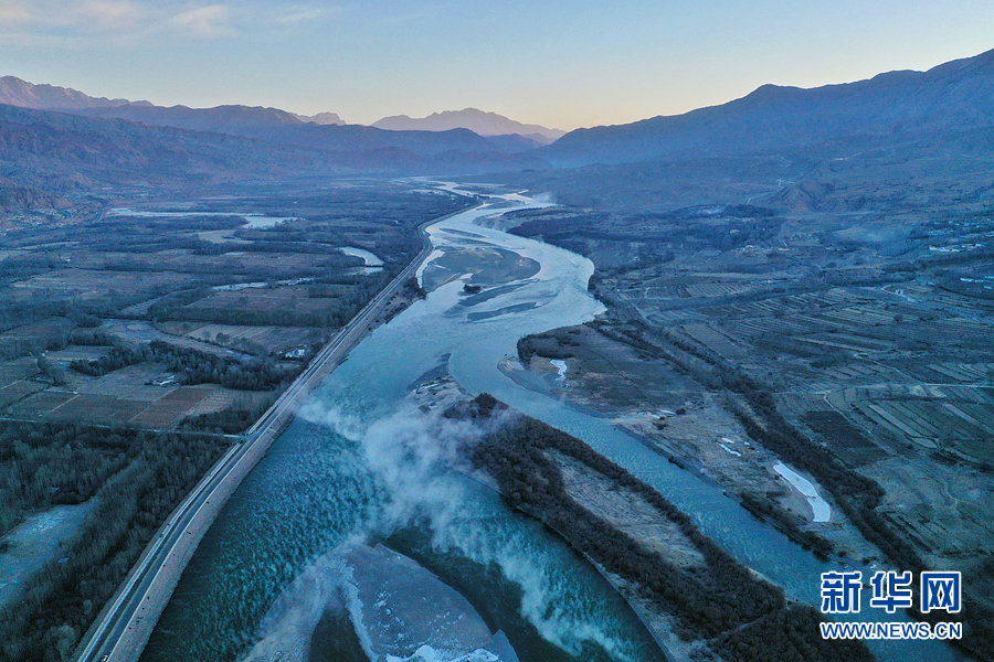 清晨,貴德黃河上升起了霧氣,宛如仙境。新華網 宋忠勇 攝