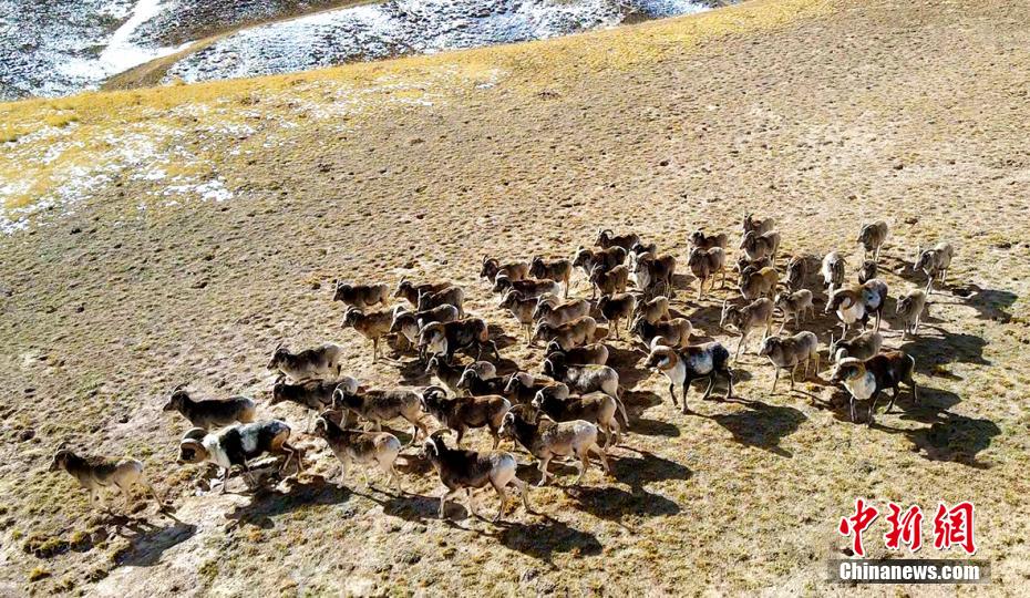 圖為航拍成群盤羊。贊慶 攝