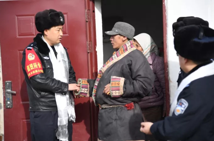 2020年1月,鄭天海帶領民警到鐵路沿線牧民家中開展幫扶慰問(資料照片)。 新華社發 高慎陽 攝