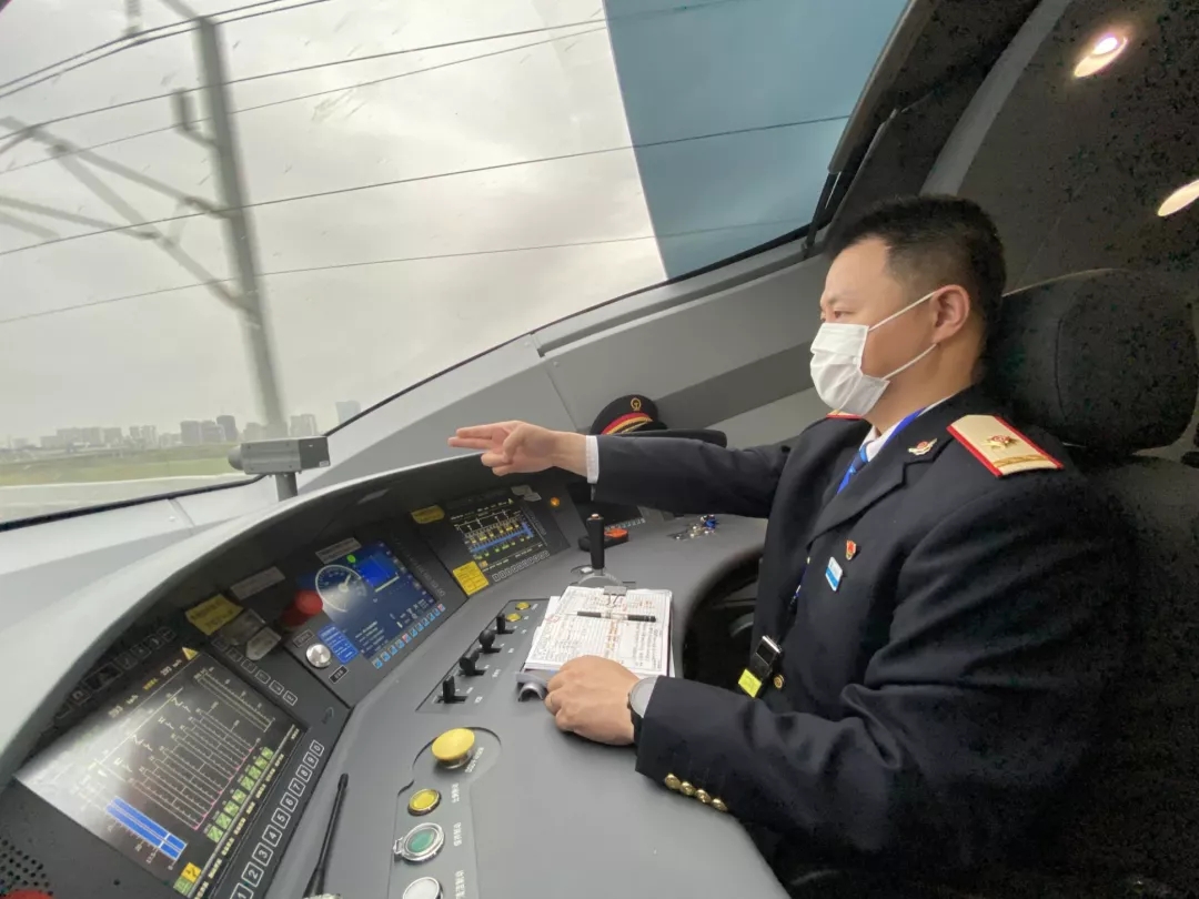 2020年1月30日清晨,馮劍堅帶著另一名司機值乘試驗列車駛出上海虹橋站。途中,他拍攝線路視頻,詳細記錄線路坡度、站臺長度、分相區段等關鍵信息?;氐絾挝缓螅B夜組織培訓,以便每名司機都盡快熟練掌握情況。