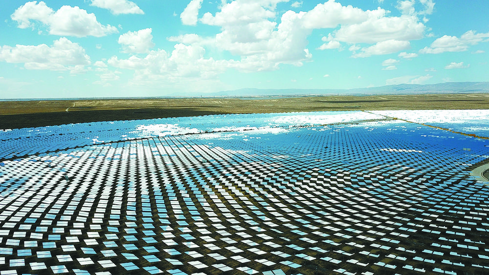一排排光伏發電板一望無際,猶如一片藍色海洋,矗立其中的一座座輸電鐵塔,像藍色大海上的風帆……如今,新能源產業占比已到海南州工業經濟的一半以上,爭當“綠色經濟”排頭兵的道路上疾步前行的海南正在實現生態效益和經濟效益“雙贏”。