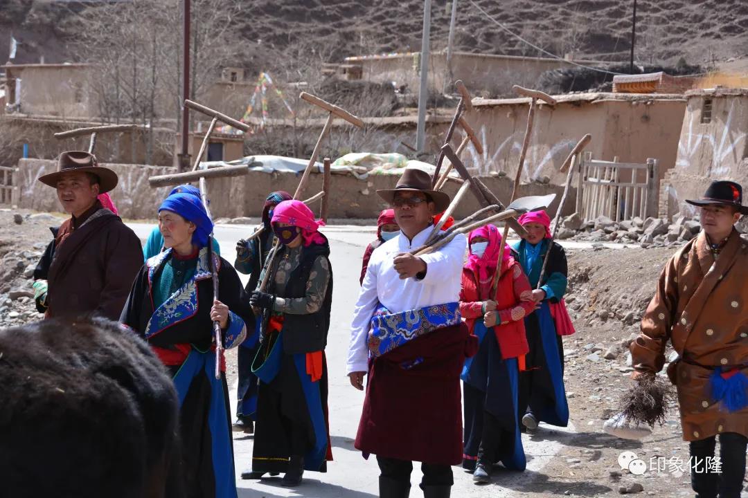 2月24日,青海省海南藏族自治州貴德縣拉西瓦鎮十個村的藏族民眾身著盛裝,端著寓意風調雨順、五谷豐登的饃饃(藏語稱之為“彤糕”)來到田間,參加傳統春耕儀式。儀式上,民眾撒種祈福,再現當地農耕從人力耕作到人畜耕作,再到機械耕作的發展過程,并用“二牛抬杠”的傳統方式開啟新春第一犁,寄托對國泰民安、五谷豐登的美好期望。