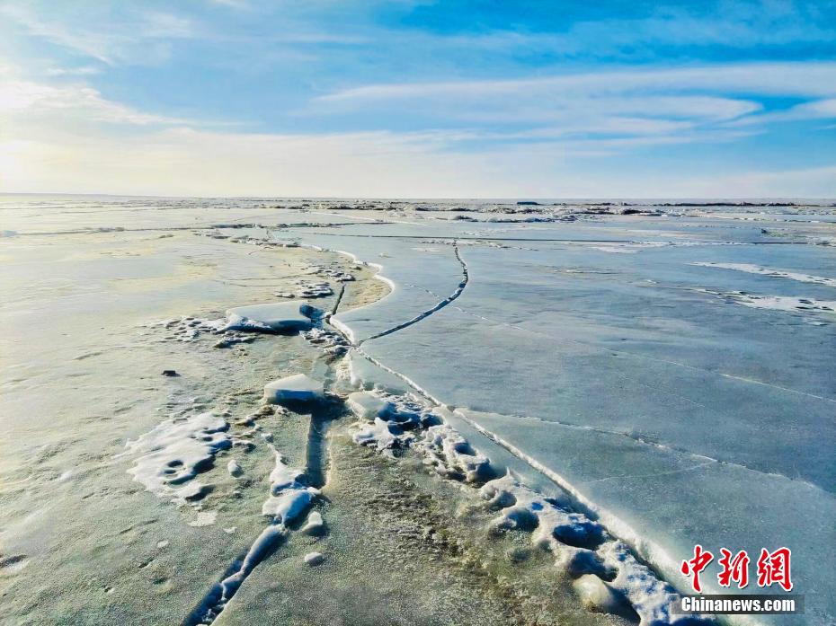 圖為青海湖邊的冰層漸漸裂開。趙海梅 攝
