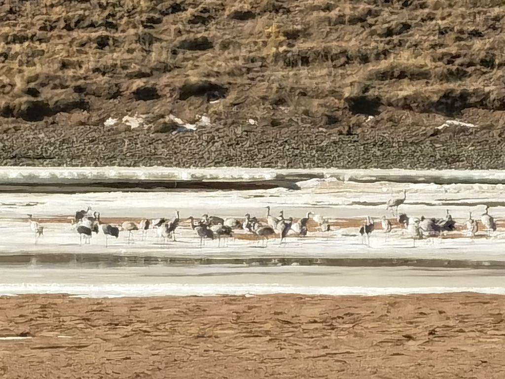 幾百只灰鶴齊聚柴達木盆地可魯克湖