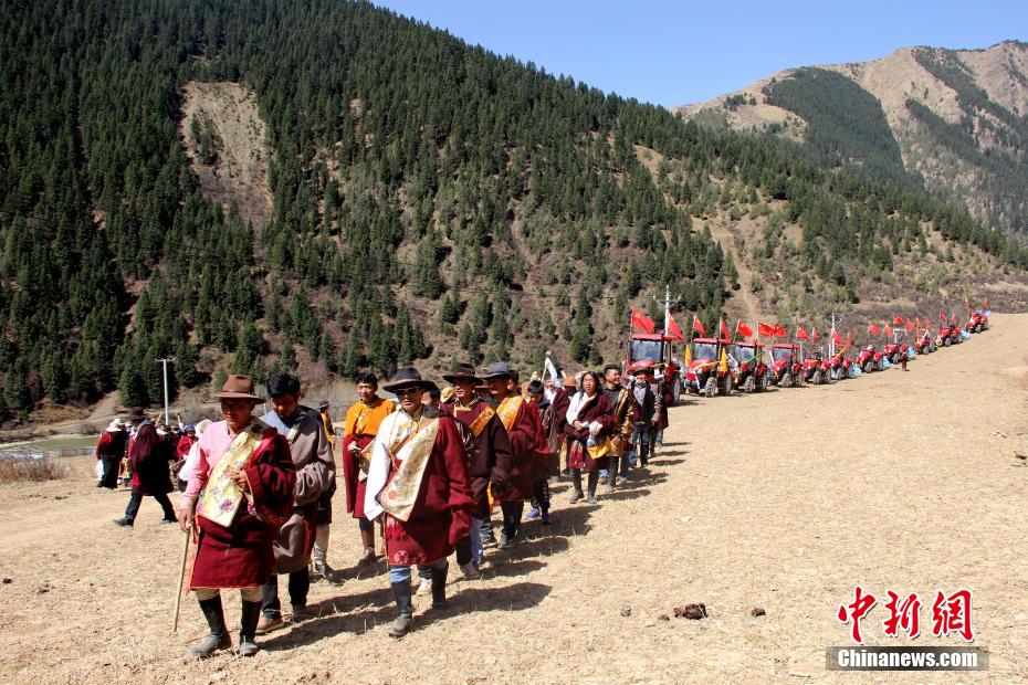圖為當地藏族村民身穿節日盛裝迎春耕。班瑪縣委宣傳部 供圖