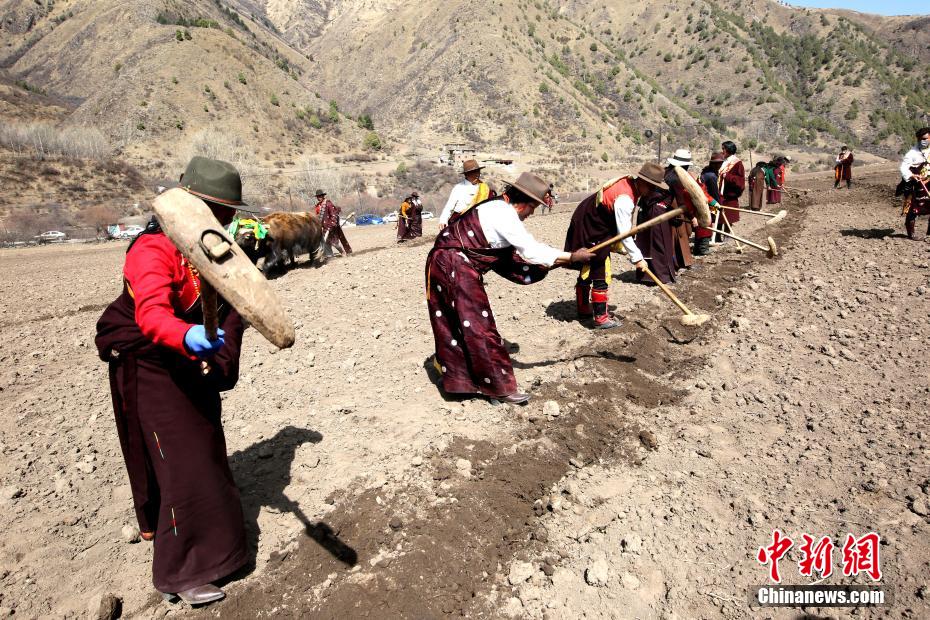 圖為身著節日盛裝的民眾進行耕地。班瑪縣委宣傳部 供圖
