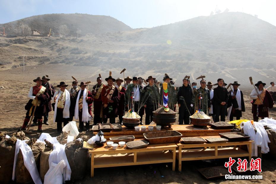 4月10日,地處三江源地區的青海省果洛藏族自治州班瑪縣燈塔鄉班前村、亞爾堂鄉果芒村迎來了一年一度的開耕儀式。在開耕儀式上,藏族民眾舉行了祭祀儀式,并在條件最好的土地中擺放著象征吉祥的“雪么項”和象征五谷豐收的青稞種子。藏族村民們身著節日盛裝一邊拋撒糌粑,一邊唱歌起舞祈愿風調雨順。