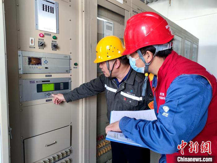 圖為國網青海電力三江源(海西營銷)共產黨員服務隊隊員在鹽湖化工鉀肥公司生產車間檢查設備。 國網海西供電公司供圖