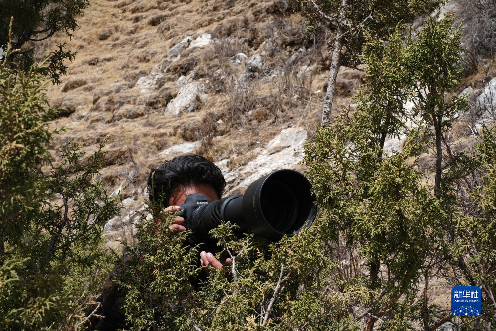 4月22日,生態(tài)管護(hù)員達(dá)杰在拍攝野生動(dòng)物。新華社記者 童昊 攝