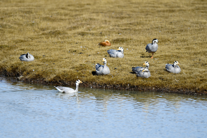 在三江源國家公園黃河源園區內拍攝的一群斑頭雁。新華社記者 李占軼 攝
