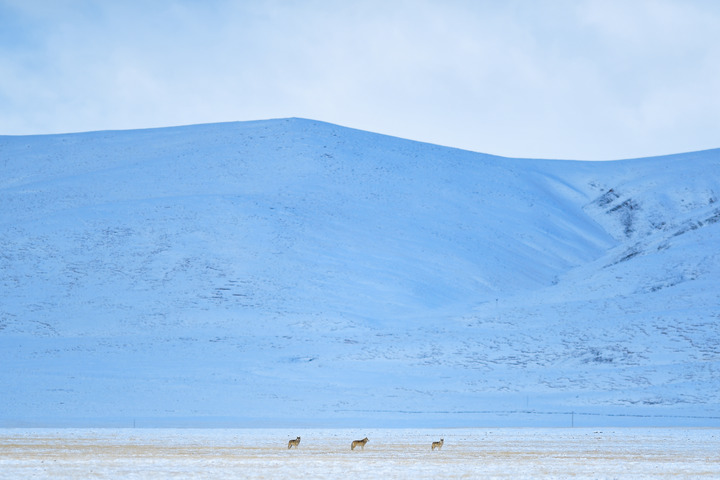 在三江源國家公園黃河源園區內拍攝的三匹狼。新華社記者 張龍 攝