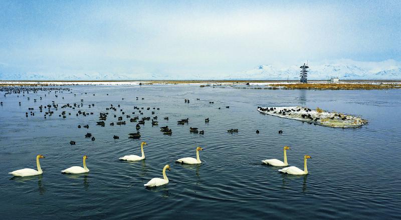3月6日清晨,雪后陽光下,數千只黃鴨、赤麻鴨、藏鴛鴦、棕頭鷗、斑頭雁等飛禽在光影交錯的若爾蓋花湖嬉戲翱翔,為初春的高原濕地平添靈動與生機。[詳細] -