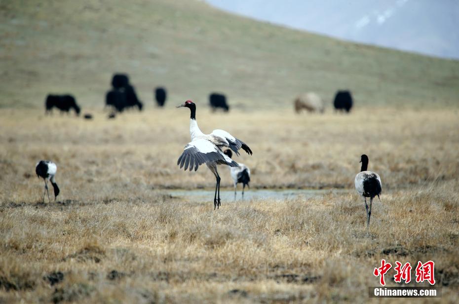 近日,百余只黑頸鶴集群在四川省阿壩藏族羌族自治州若爾蓋國家級自然保護區熱曲河畔追逐、休憩,它們將在這里慢慢建立各自的領域并進入繁殖期。春季,是各種越冬鳥兒返回繁殖地的季節。在四川若爾蓋國家級自然保護區內,2000余只黑頸鶴,由以前的候鳥變成了留鳥,在當地定居到11月后離開,目前已進入繁殖期。