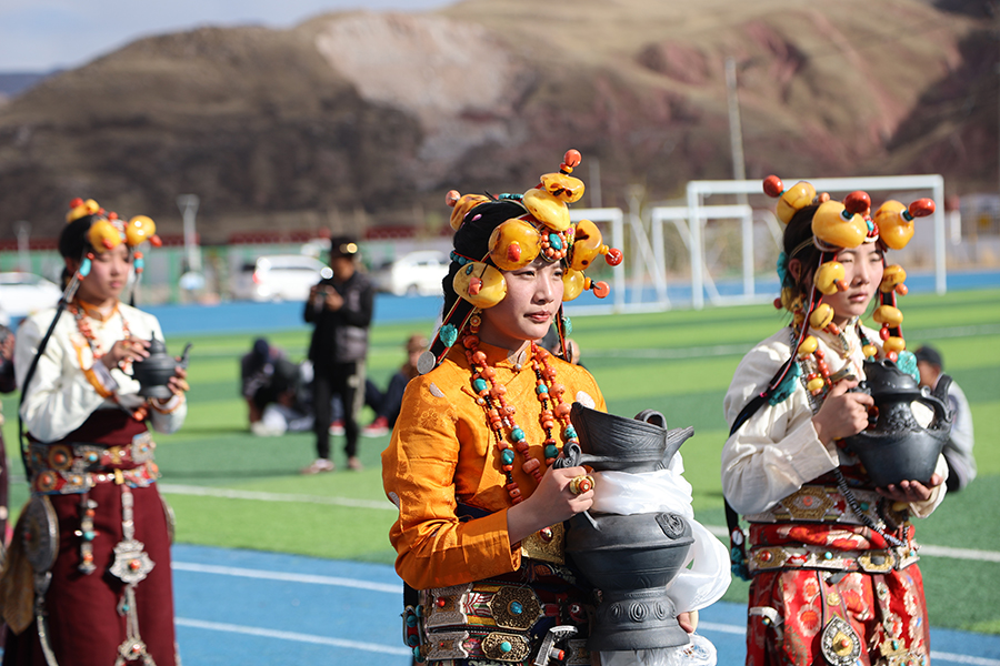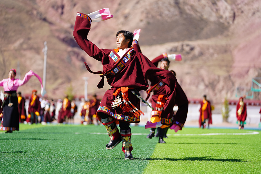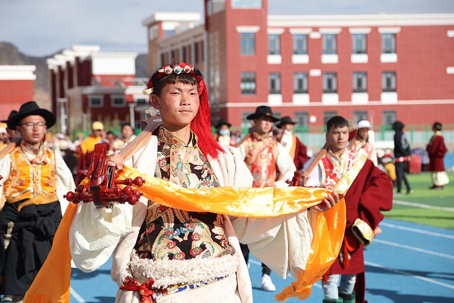 5月6日,青海師范大學附屬玉樹實驗學校舉行“五四運動103周年紀念大會暨‘華美青春耀百年’”文化展示活動,千余名師生身著華麗的民族服飾共同慶祝這一青年人的節日。