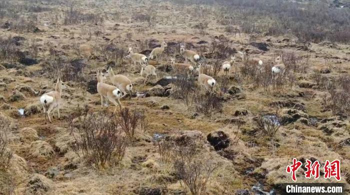 記者16日從青海省果洛藏族自治州班瑪縣委宣傳部獲悉,當地融媒體中心記者日前在采訪過程中拍攝到十幾頭藏原羚活動的畫面。