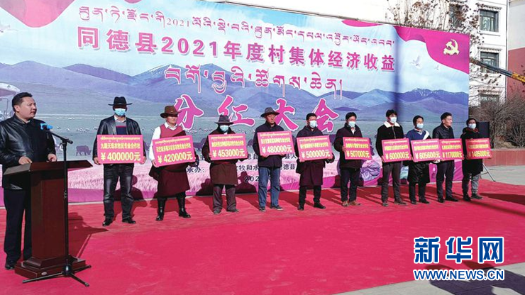 (資料圖)同德縣2021年度村集體經濟收益分紅大會現場。新華網發