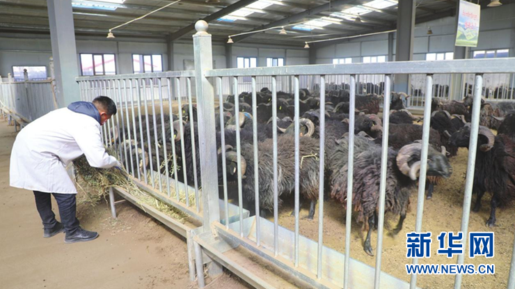 (資料圖)飼養員為養殖的黑藏羊添加飼料。新華網發