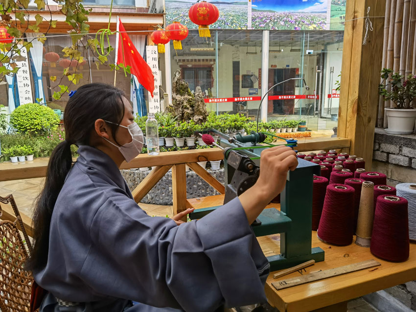 2022年5月12日,“5·12”汶川特大地震抗震救災14周年紀念日,山鷹帶著幾個員工來到漁子溪,在汶川縣黨委、映秀鎮(zhèn)黨委、漁子溪村兩委及當地群眾的熱情幫助下,舉辦了“藍措馬”品牌圍巾展示活動。村里還積極幫助他們尋找合適的房屋作為編織車間,讓他們先在漁子溪站住腳。