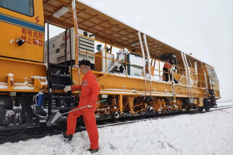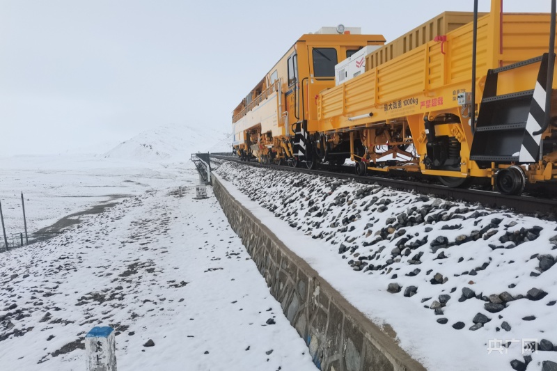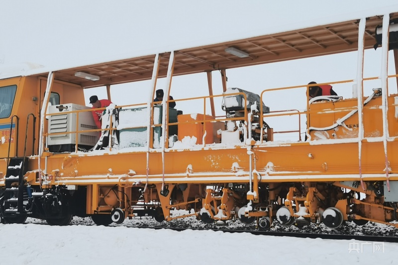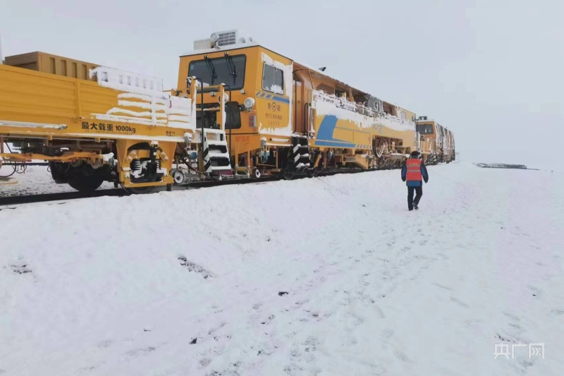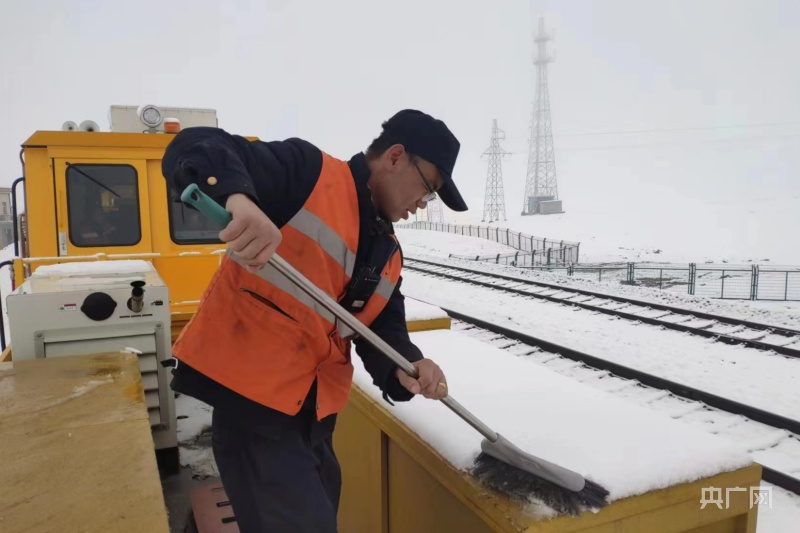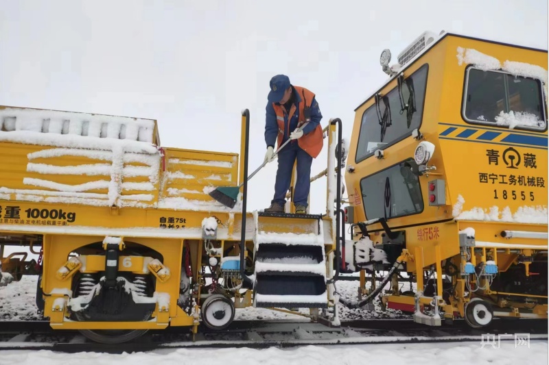 昆侖山上,氣溫驟降,多處施工現場被大雪覆蓋,一片白雪皚皚。為確保施工順利進行,近日,西寧工務機械段維修三車間的職工們開啟了對青藏鐵路格拉線望昆——昆侖山區間大機搗固施工作業。西寧工務機械段維修三車間主任王海峰在施工作業前,帶領車間職工清理積雪,同時對低溫狀態易發生故障的作業裝置進行針對性保養。“注意腳下積雪濕滑,扶穩抓牢,保證自身人身安全。”車間副主任張小波提醒說。