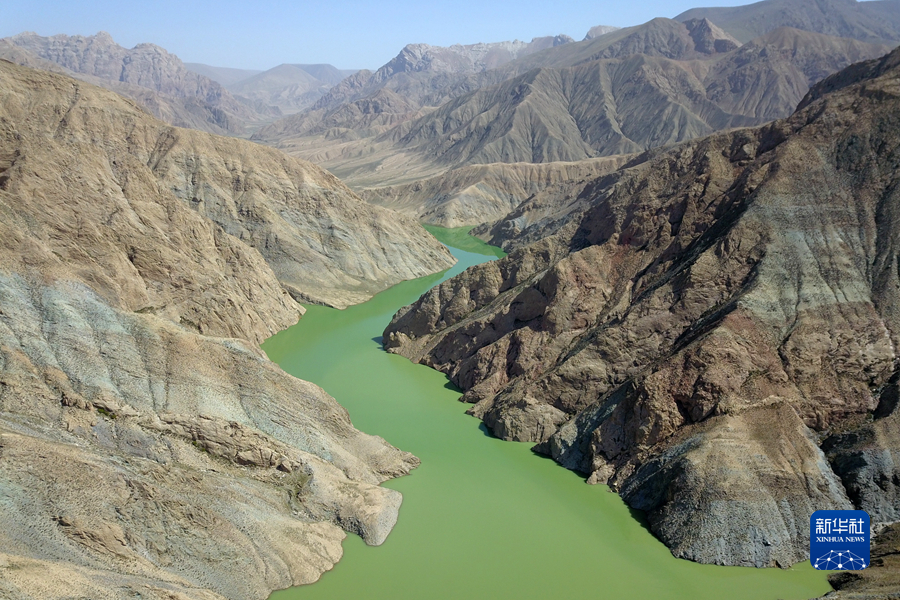 這是6月8日在青海省海西蒙古族藏族自治州德令哈市境內拍攝的蓄水中的蓄集峽水庫(無人機照片)。新華社記者 范培珅 攝