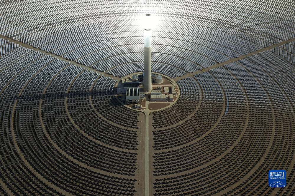 這是6月8日在海西蒙古族藏族自治州德令哈市光伏(光熱)產業園拍攝的青海中控德令哈50兆瓦光熱電站(無人機照片)。新華社記者 范培珅 攝