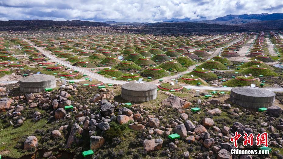 6月28日,四川稻城,稻城高海拔宇宙線觀測站均勻分布的探測器。海拔4410米的四川省甘孜州稻城縣海子山,5216個電磁粒子探測器和1188個繆子探測器,以及占地78000平方米的水切倫科夫探測器有序分布在1.36平方公里范圍,十分壯觀,這是中國建設的第三代高山宇宙線實驗站。 中新社記者 劉忠俊 攝