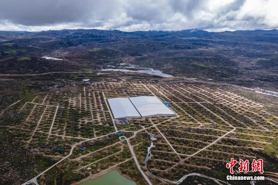 6月28日,四川稻城,觀測站中間房屋結構為水切倫科夫探測器。海拔4410米的四川省甘孜州稻城縣海子山,5216個電磁粒子探測器和1188個繆子探測器,以及占地78000平方米的水切倫科夫探測器有序分布在1.36平方公里范圍,十分壯觀,這是中國建設的第三代高山宇宙線實驗站。中新社記者 劉忠俊