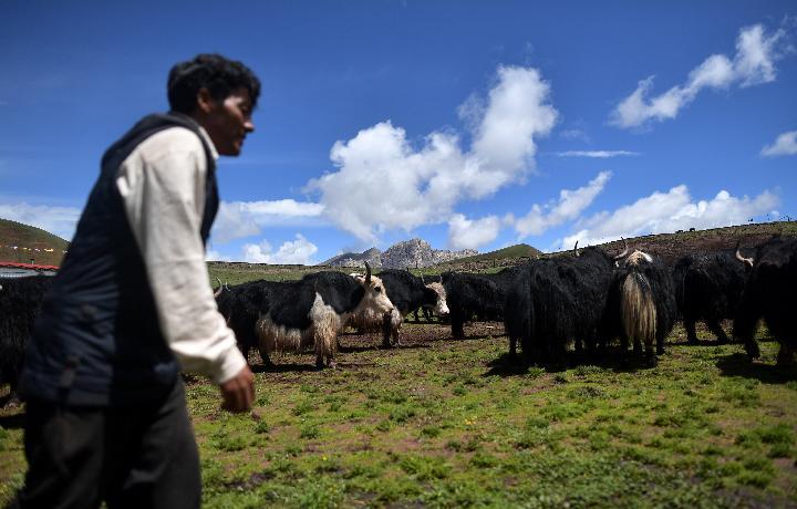 優美村生態畜牧業專業合作社牧工準備將牦牛趕往夏季草場。新華社記者 張宏祥 攝