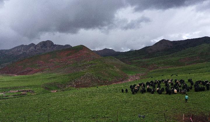 “公牛要單獨分群,從草棚的左邊趕過去;初生小牛犢和牛媽媽分一群,趕到山上夏季草場上草最好的那一片……”從事了幾十年的畜牧業,53歲的尕拉旺扎指揮起轉場來,從容而有序。