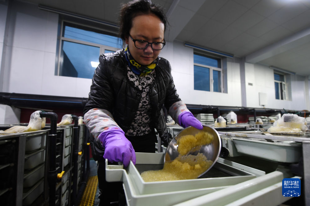 6月29日,在青海湖裸鯉沙柳河泉吉河增殖實驗站的繁育車間,工作人員將采集的魚卵放入孵化盒中。新華社記者 范培珅 攝