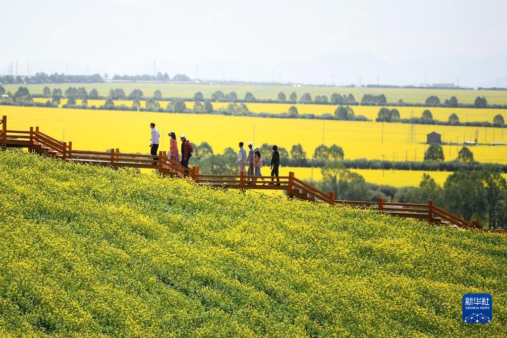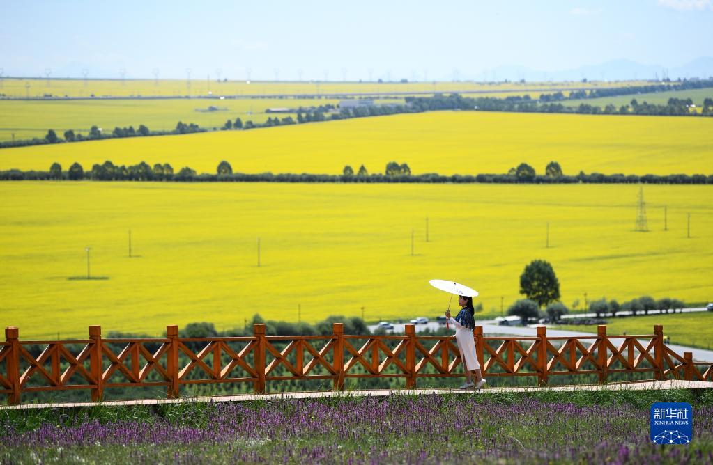 7月3日,游客在青海省海北藏族自治州門源回族自治縣境內一處景區游玩。新華社記者 張龍 攝