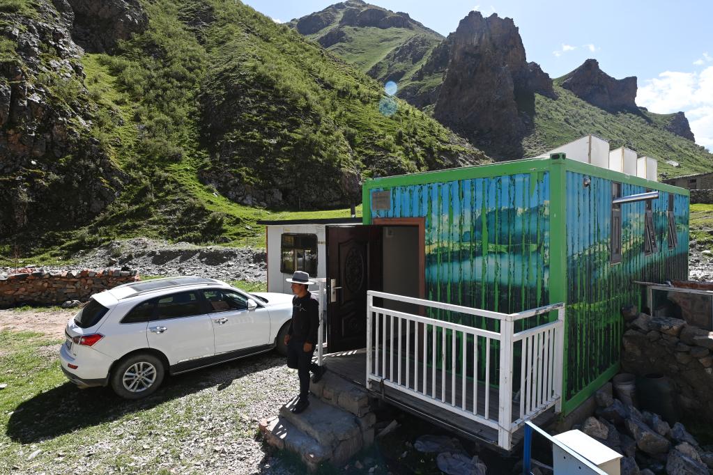 盛夏,昂賽大峽谷流水潺潺、綠草如茵;四周山勢奇絕,常有雪豹、白唇鹿、巖羊等野生動物出沒。在特許經營接待集裝箱內,桑周忙著打掃衛生,清洗床鋪,準備迎接從各地到來的自然體驗者。