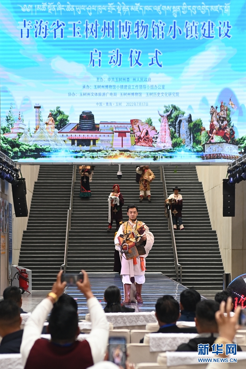 這是17日拍攝的青海省玉樹州博物館小鎮建設啟動儀式現場,模特正在展示博物館藏品。新華社記者 范培珅攝