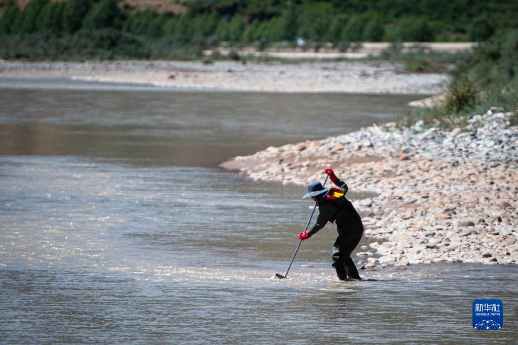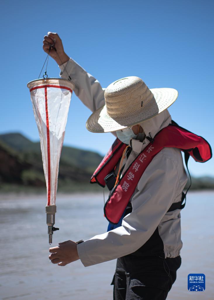 7月24日,長江科學院科考隊員劉晗在瀾滄江源區的扎曲采集魚類樣本。新華社記者 肖藝九 攝