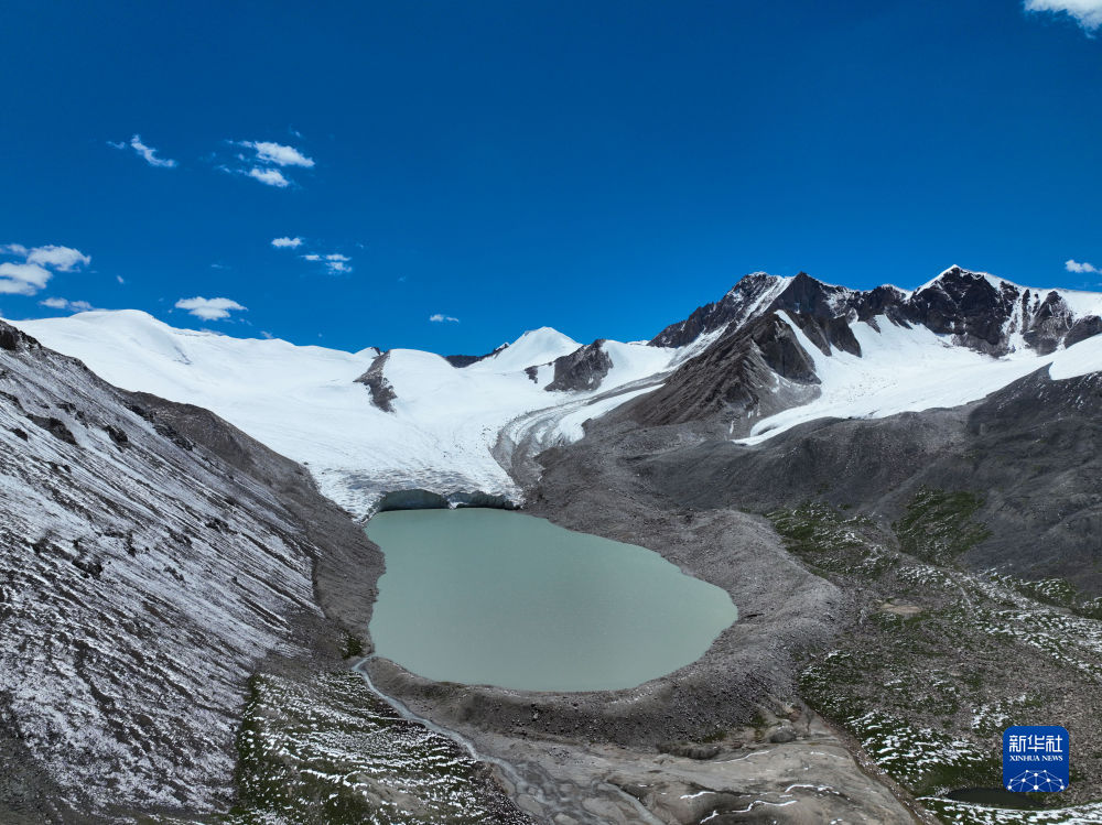 這是7月21日在長江源地區拍攝的冰川與湖泊(無人機照片)。新華社記者 張龍 攝