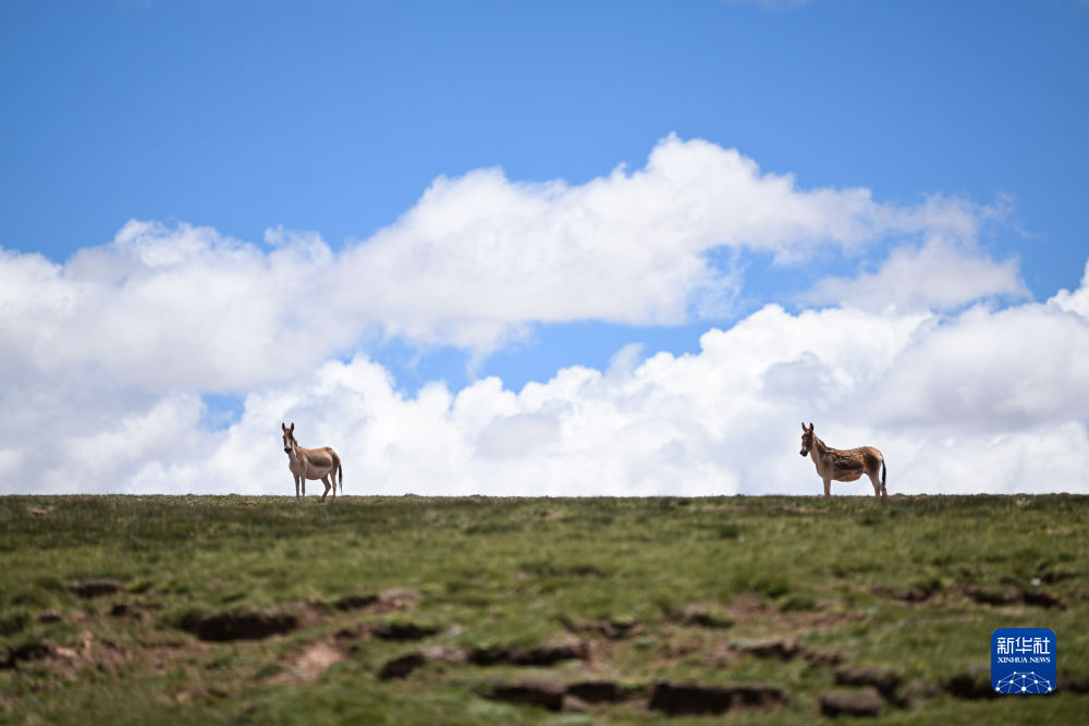 這是7月18日在長江源地區拍攝的藏野驢。新華社記者 張龍 攝