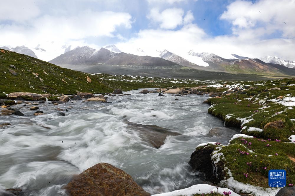 這是7月21日在長江源地區拍攝的格拉丹東雪山風光。新華社記者 張龍 攝