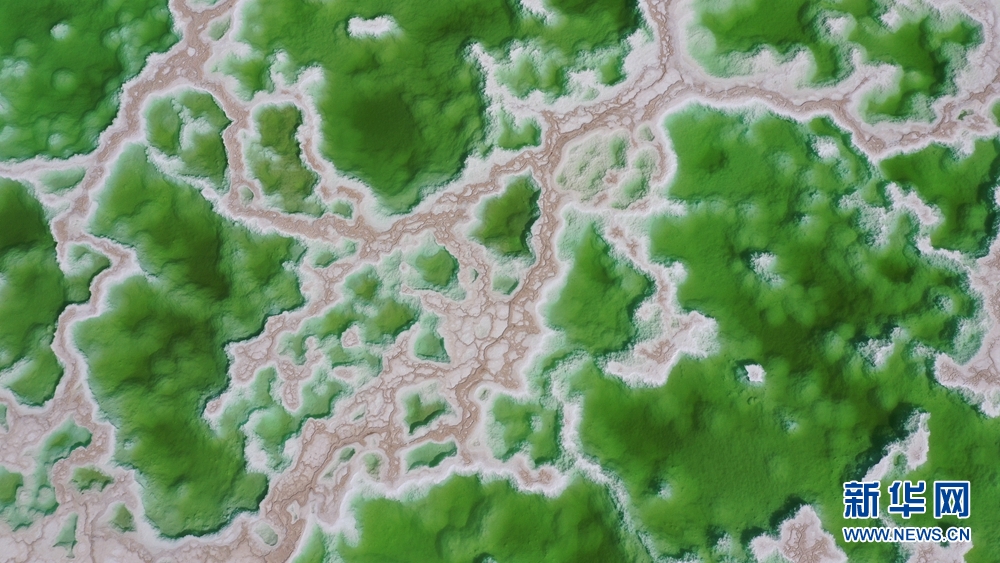 8月15日,航拍地處青海省海西州茫崖市的翡翠湖。翡翠湖是一個人工鹽湖,田字狀的湖水呈現出青翠的色彩。[詳細] -