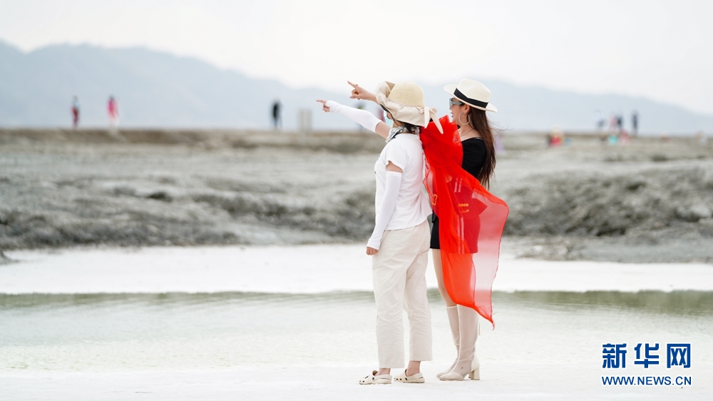 7月20日,游客在海西州大柴旦行委境內的翡翠湖游玩。