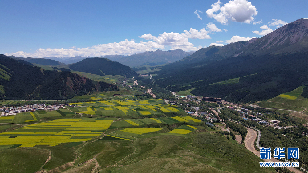 盛夏時節(jié),青海省海北藏族自治州祁連縣的卓爾山景區(qū)綠意盎然,風(fēng)景如畫。