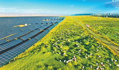 綠水青山就是金山銀山。近年來,海南州探索出了光伏治沙新模式,荒漠化土地和沙化土地呈現“雙下降”趨勢。“光伏+生態治理+生態牧業”的建設模式,發揮出生態修復功能,助力草場牧場恢復,實現了板上發電、板下放羊,進一步帶動了當地牧民增收。