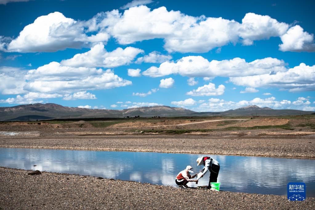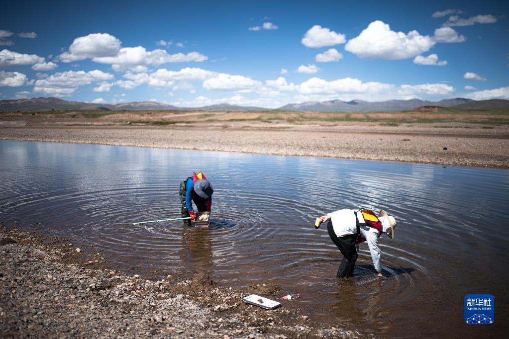 7月25日,長江科學院科考隊員在采集底棲動物樣本。 新華社記者 肖藝九 攝