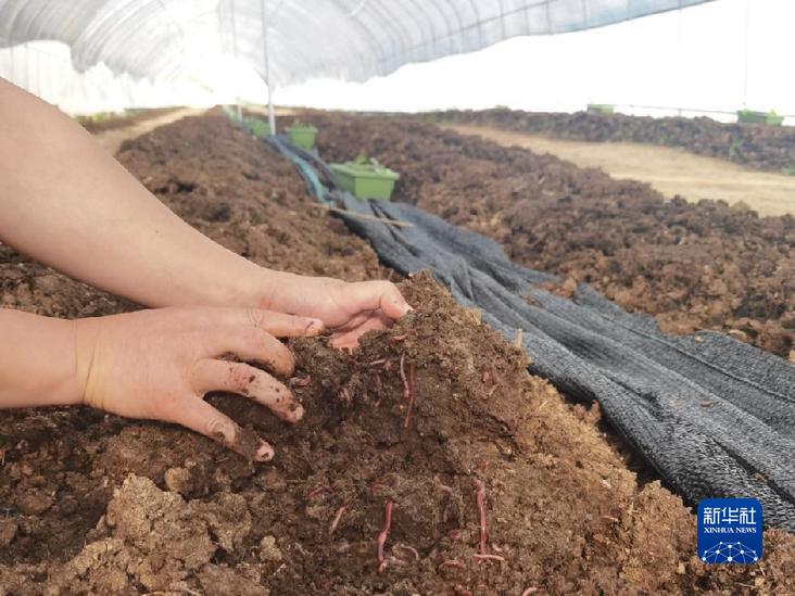 阿壩州遠龍養殖有限公司在大棚里用牛糞養蚯蚓。新華社記者 李倩薇 攝
