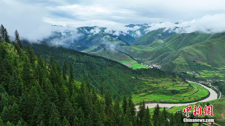 圖為航拍雨后青海瑪可河國家森林公園 圖片來源:中國新聞網