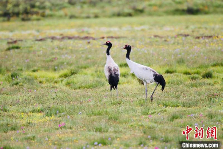 圖為瑪可河國家濕地公園內的黑頸鶴。圖片來源:班瑪縣委宣傳部