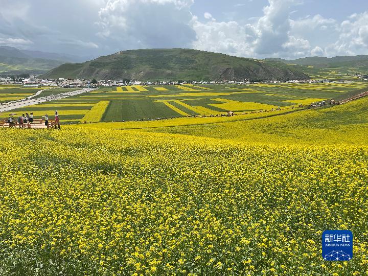 青海門源:高原油菜花開鋪就“金色花?!?/a>
