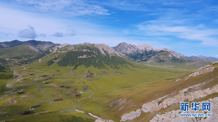 從天峻溝上空遠眺,視野開闊,風景如畫。新華網 卡婭梅朵 攝